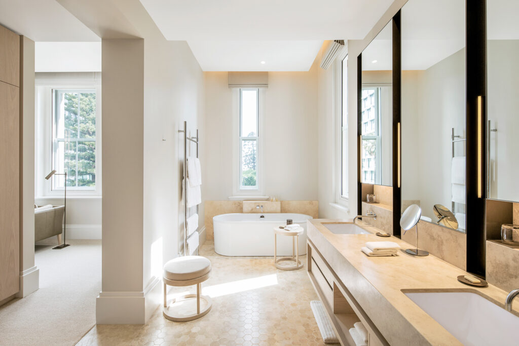 The property offers 48 spacious rooms and suites, each styled with clean lines and natural tones. Floor-to-ceiling windows invite abundant light, while modern comforts ensure a seamless blend of old-world charm and contemporary convenience. Facilities include a spa, gym and indoor pool, alongside signature dining experiences.