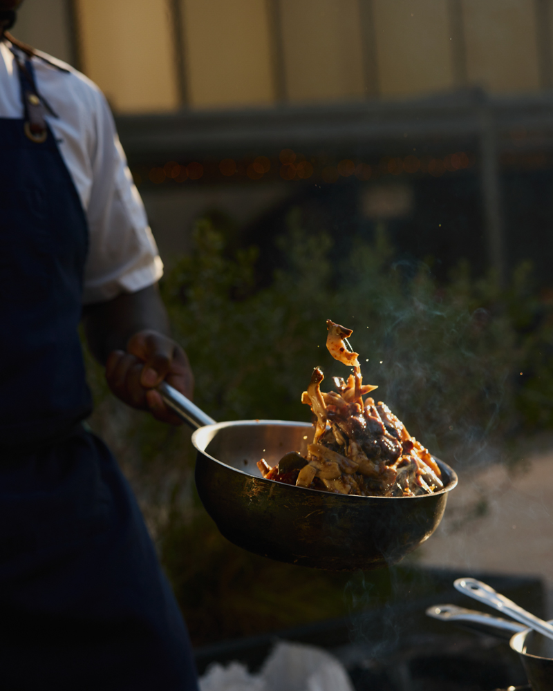 At Hearth’s Fire Feasts, held alfresco on the terrace overlooking Elizabeth Quay, guests dine communally around an open firepit. Chefs Brian Cole and Paul ‘Yoda’ Iskov prepare a three-course menu that draws upon traditional fire cooking, highlighting ingredients sourced from across the state — from boab tuber and youlk to native basil and crocodile tongue. Each course is framed with chef-led insights, allowing diners to connect with the land and its Indigenous food systems through flavour and narrative.