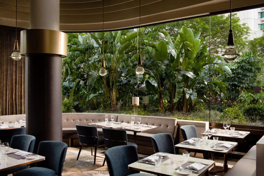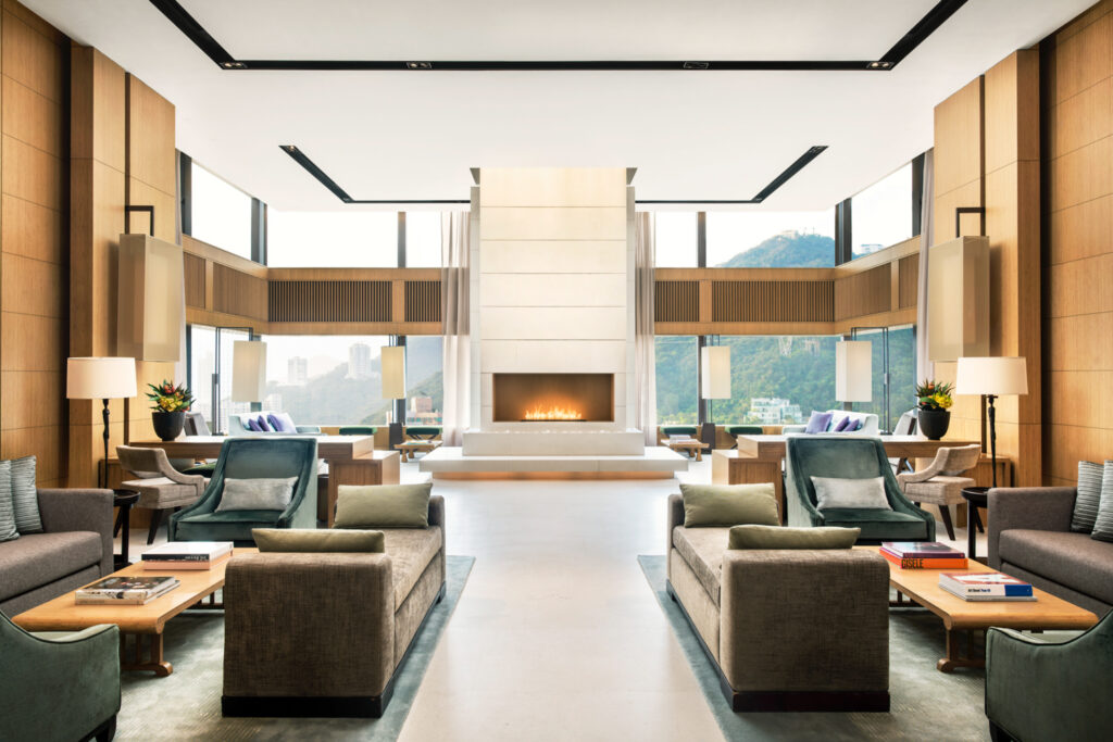 Design is central to the hotel’s character. Natural stone, timber and fabric are layered into serene spaces that emphasise verticality and light. Guest rooms are among the largest in the city, with spa-like bathrooms featuring limestone, soaking tubs and picture windows that frame Victoria Harbour or mountain views. The effect is residential rather than hotel-like, prioritising comfort and ease over ostentation.