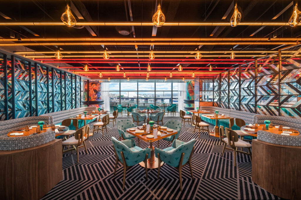 Design by HASSELL takes inspiration from Sydney’s relationship with water, expressed in curving architecture, reflective surfaces and a colour palette that shifts with light. Interiors amplify this dynamism with vibrant tones, sculptural furniture and playful art installations. Guest rooms feature floor-to-ceiling views, advanced technology and bathrooms that double as statement spaces, with oversized tubs and dramatic lighting.