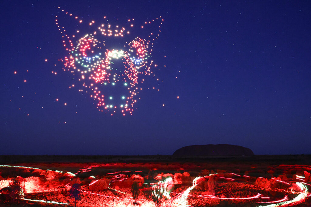 Wintjiri Wiru is a world-first, world-class cultural storytelling experience, using 1200 choreographed drones, lasers, and projections to illuminate Uluṟu’s night sky. Guided by the Anangu, the Traditional Owners of Uluru, the three-hour Sunset Dinner unfolds on a custom-built dune-top deck with panoramic views of Uluru and Kata Tjuta. Guests are welcomed with cocktails and canapés infused with native ingredients before dining al fresco as the sun sets. When darkness falls, the story of the Mala people is brought to life in an extraordinary symphony of light, sound, and performance.